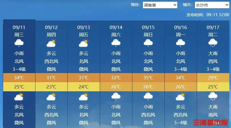 降雨降温马上到!中秋期间长沙天气→