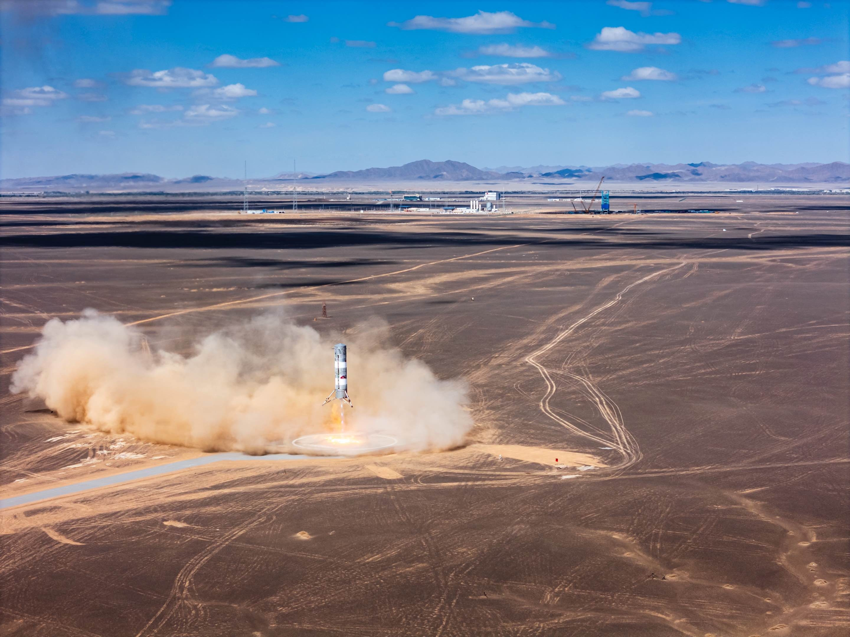 试验中,火箭空中飞行总时间为200.7秒,经历“上升—发动机关机—无动力滑行—发动机空中二次起动—软着陆”过程。其中,火箭起飞后约113秒,发动机第一次关机,火箭继续依靠惯性飞行至距地面高度10002米的最高点。为抵消36米/秒的高空横风干扰,火箭依靠高空风修正、栅格舵和冷气姿控来稳定飞行姿态。经过无动力滑行约40秒后,在火箭高度降至约4640米、速度达到0.8马赫(约272米/秒)情况下,发动机进行空中100%工况二次点火,火箭进入着陆减速段,并通过在线制导控制算法,调节发动机推力和飞行状态,引导箭体在距离发射工位约3.2千米的回收场坪实现软着陆。最终,火箭着陆位置中心点距离回收场坪中心位置1.7米,着陆垂直速度-1.65米/秒,着陆姿态角偏差为0.3度,各项指标均满足预期设计,达到国内领先水平。