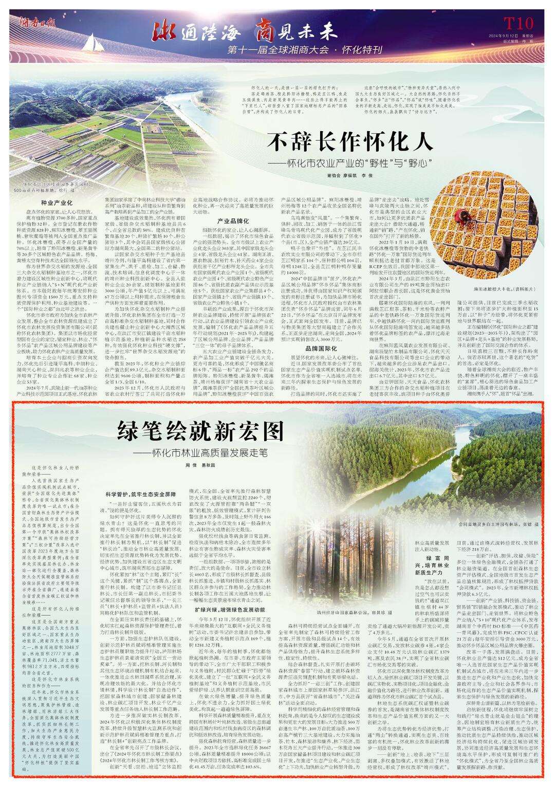 启航新征程,怀化将继续牢固树立和践行“绿水青山就是金山银山”的理念,因地制宜培育林业新质生产力,统筹产业结构调整、污染治理、生态保护,推动优质生态产品持续供给,推动区域经济结构持续优化,促进区域协调发展,协同推进经济高质量发展和生态环境高水平保护,形成可复制可推广的“怀化模式”,为全省乃至全国林业高质量发展探新路、作贡献。