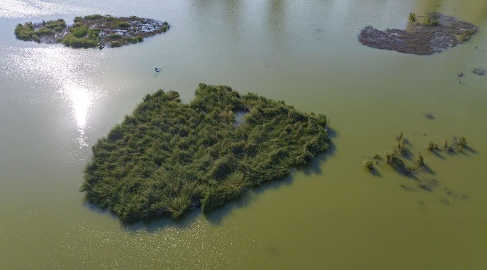 ↑这是8月28日拍摄的宁夏银川市阅海国家湿地公园(无人机照片)。新华社记者 杨植森 摄