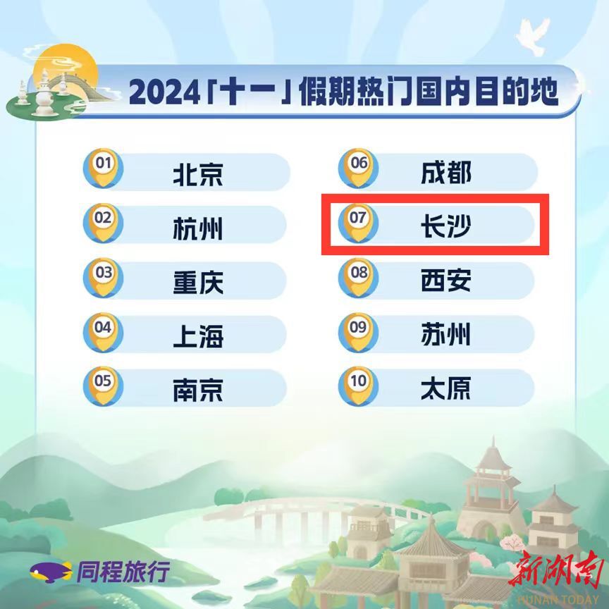 近日,根据去哪儿、同程旅行平台陆续公布的中秋假期文旅市场趋势预测,长沙进入全国TOP10热门旅游目的地。