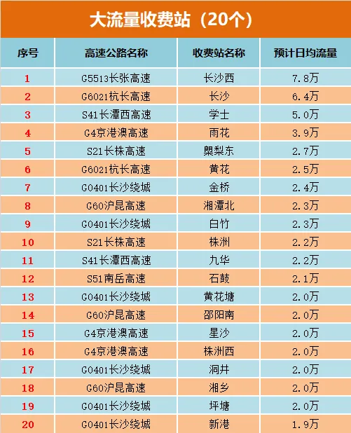 中秋假期,周边游特征依旧显著,出行方式主要是中、短途自驾出行为主。预计省内景区出游热度较去年基本持平,长沙市、湘潭市毛泽东故居、张家界国家森林公园、湘西州凤凰古城景区、衡阳市南岳衡山等周边高速收费站流量较大,另外第三届邵阳旅游发展大会在城步举行,邵阳市周边热点景区新宁县崀山风景名胜区、城步县南山风景名胜区、绥宁县黄桑自然保护区周边高速公路出入口将迎来较大车流。