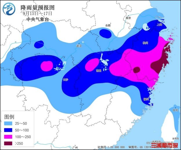 降雨预报显示,9月15日至17日(中秋节假期),江南、江汉等地有大到暴雨,浙江东部和南部、福建北部、江西北部、安徽南部、湖南北部部分地区有大暴雨,浙江东部沿海有特大暴雨。
