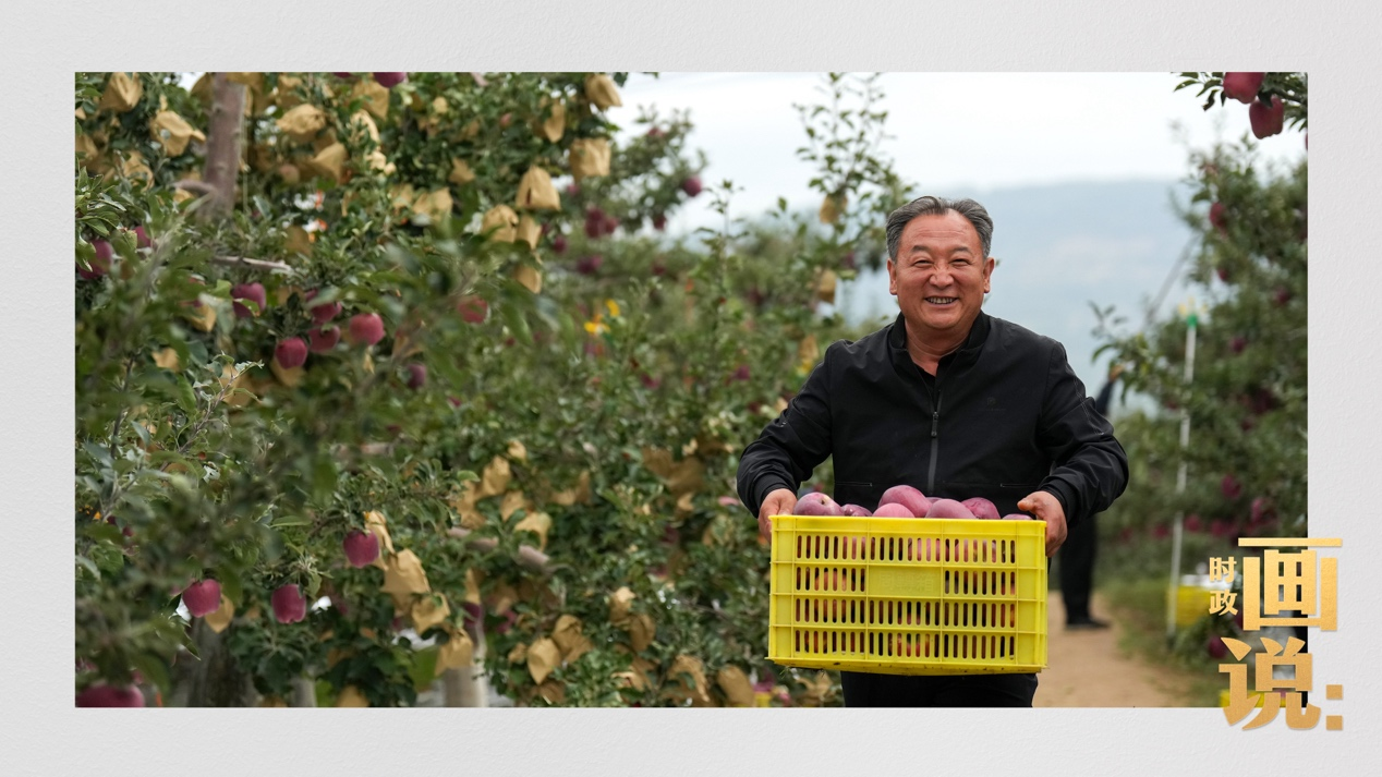 11日上午,习近平总书记来到甘肃省天水市麦积区南山花牛苹果基地考察调研,了解当地发展特色现代山地果业等情况。
