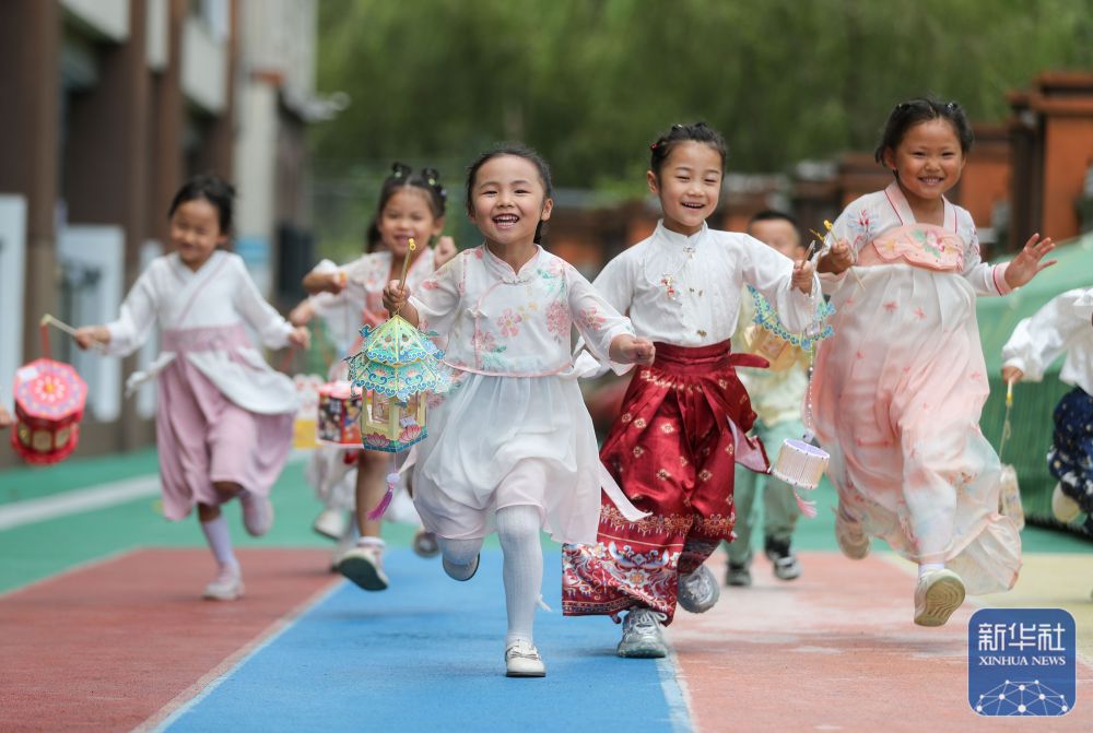 9月11日,在贵州省贵阳市开阳县第二幼儿园举行的“品民俗 迎中秋”主题活动中,小朋友手持花灯开心奔跑。新华社发(袁福洪摄)