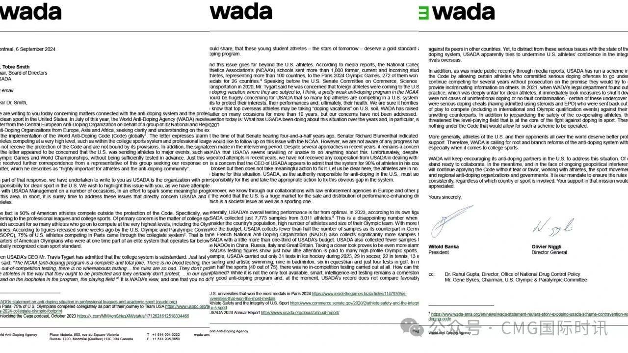 世界反兴奋剂机构在信中还曝光了美国反兴奋剂机构种种劣迹。