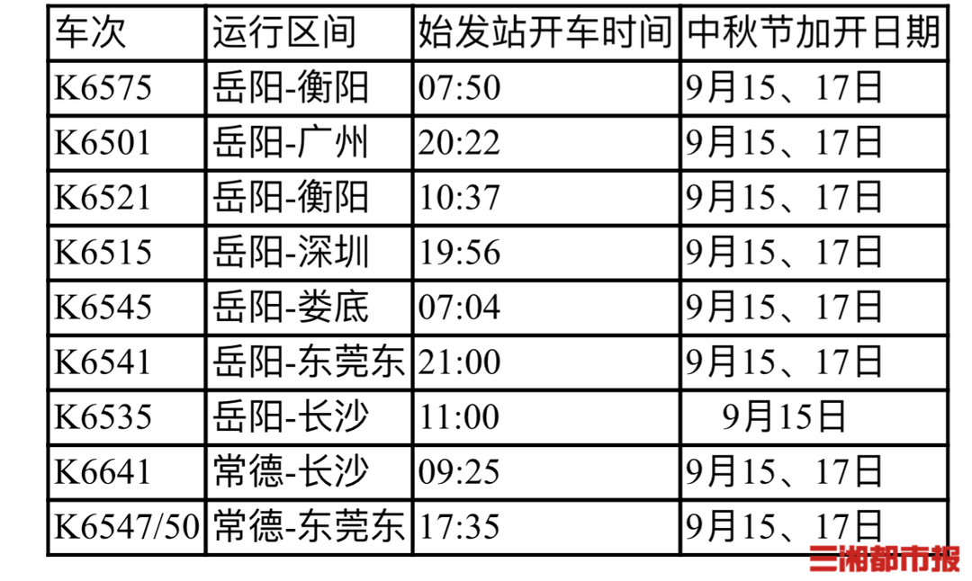 出行早知道|中秋广铁长沙车务段增开9趟始发临客