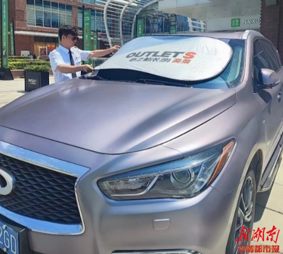 家住长沙月亮岛片区的彭先生,就常与家人前往砂之船(长沙)奥莱购物。据他回忆,八月盛夏的一天,他看到,该商场的停车场礼宾人员正在为停放在商场前坪的车辆黏贴遮阳膜。