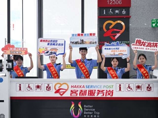 14日11点30分,G8491次列车从梅州西站缓缓开出,向广州东站加速驶去。车厢里,“遇见梅州、遇见美好”的横幅随处可见,旅客们的脸上洋溢着幸福的笑容。