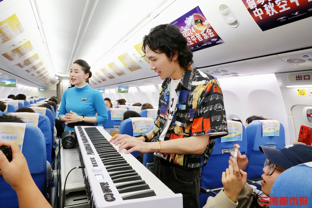 三湘都市报·新湖南客户端9月15日讯(文/视频 全媒体记者 李致远 通讯员 赵晶 李必博)9月14日,济南飞往长沙的MF8070航班上,厦门航空为旅客们带来了一场别开生面的空中音乐会,编织了一场关于中秋、音乐与湖南文化的奇妙之旅。