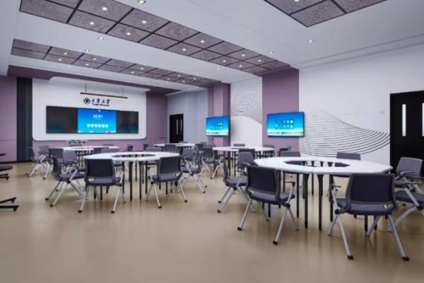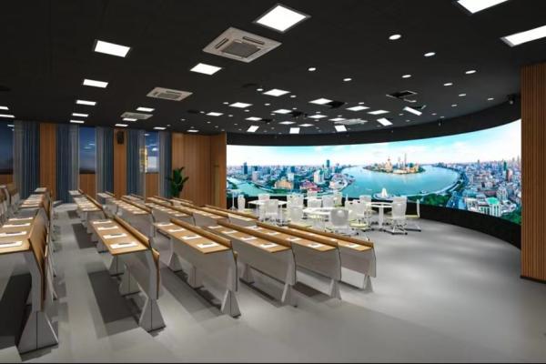 天津大学全景教学空间占地341㎡,能同时容纳200人开展活动,是集网络教学、实境教学、三维模型授课、分组授课、虚拟实训、远程同步课堂、科学研究于一体的一整套软硬件融合空间。