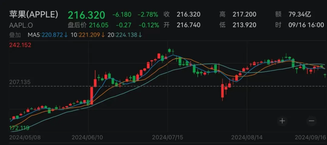 摩根士丹利的分析师埃里克·伍德林上周表示,市场的焦点将转向iPhone 16的早期预订和交货时间数据。此外,Miller Tabak的首席市场策略师马修·马利警告称,随着假日销售季的临近,苹果股票面临“实质性下跌”的风险已大幅增加。