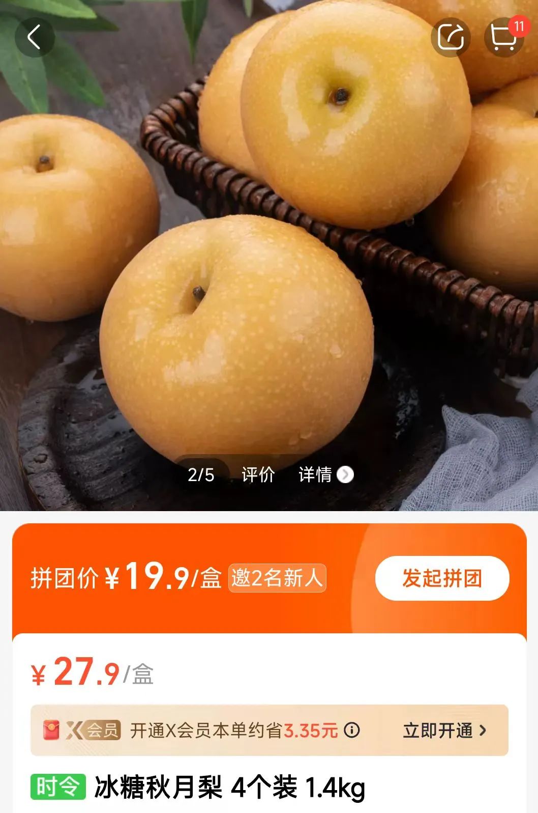 电商平台秋月梨(4个装)价格,跟刚上市时比跌去近一半