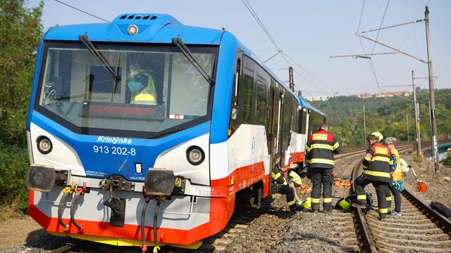 ↑9月18日,在捷克首都布拉格,消防和铁路部门工作人员在事故现场工作。