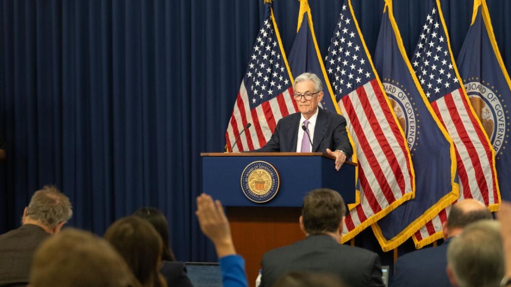 9月18日,美国联邦储备委员会主席鲍威尔在华盛顿出席记者会。美国联邦储备委员会18日宣布,将联邦基金利率目标区间下调50个基点,降至4.75%至5.00%之间的水平。新华社 图