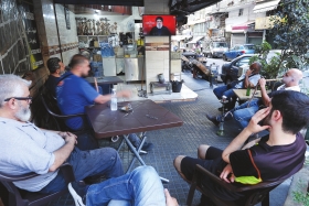 9月19日,在黎巴嫩贝鲁特,人们收看真主党领导人纳斯鲁拉发表电视讲话。图/新华社