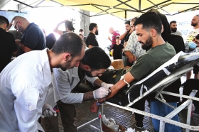 黎巴嫩民众应卫生部的号召来到贝鲁特献血中心献血。