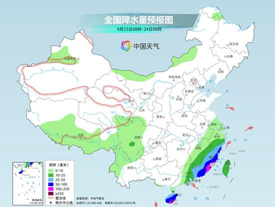 未来三天(9月21日至23日),我国主要降雨区域将转移至华南一带,广东、福建、海南等地部分地区或有大暴雨,需注意防范强降雨可能引发的次生灾害。气温方面,周末两天,冷空气继续南下,南方大部迎来降温,炎热天气明显缓解,中东部多地气温将创下半年来新低。