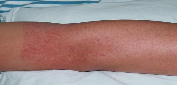 皮疹:四肢躯干或头面部,出现充血性皮疹或点状出血疹。