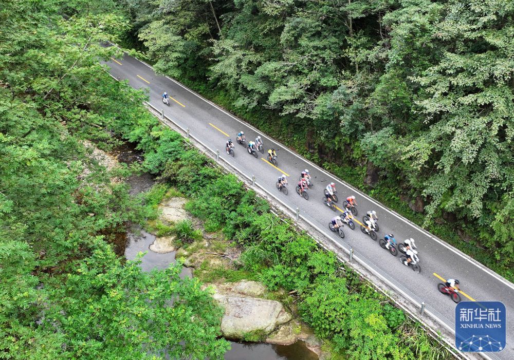 ↑参赛车手在比赛中(无人机照片)。新华社发(吴勇兵摄)