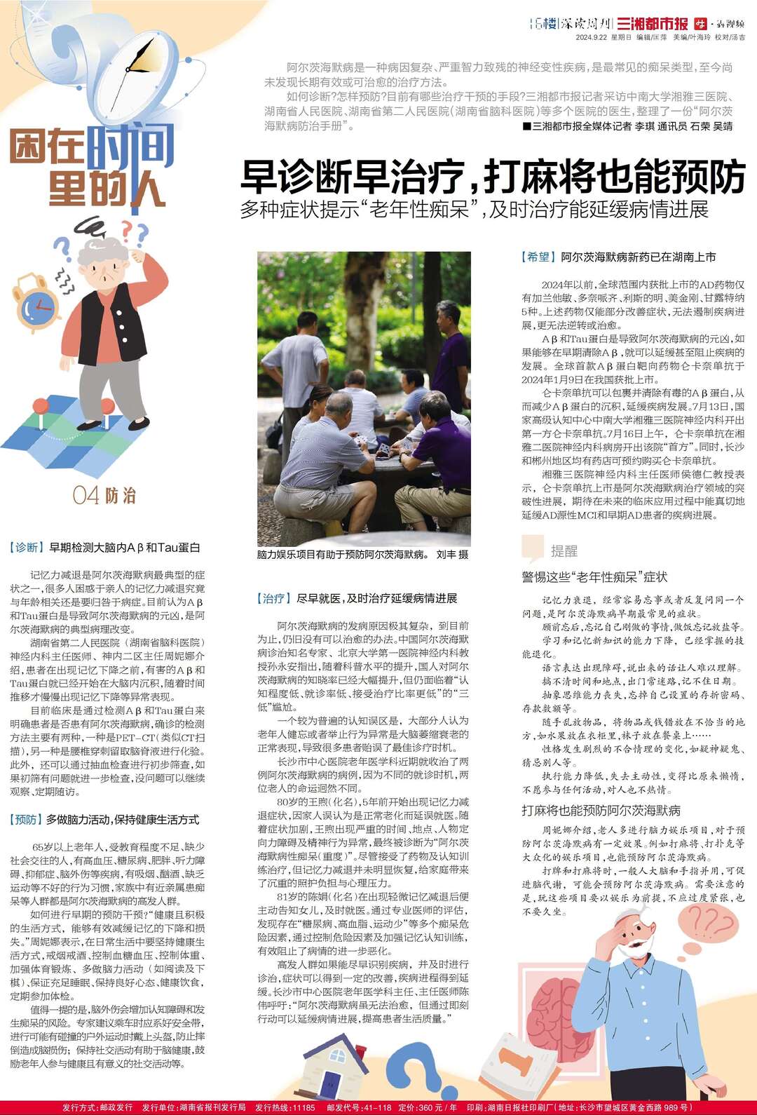 2024年9月21日是第31个“世界阿尔茨海默病日”,今年的宣传主题是“即刻行动:点亮记忆之光”。