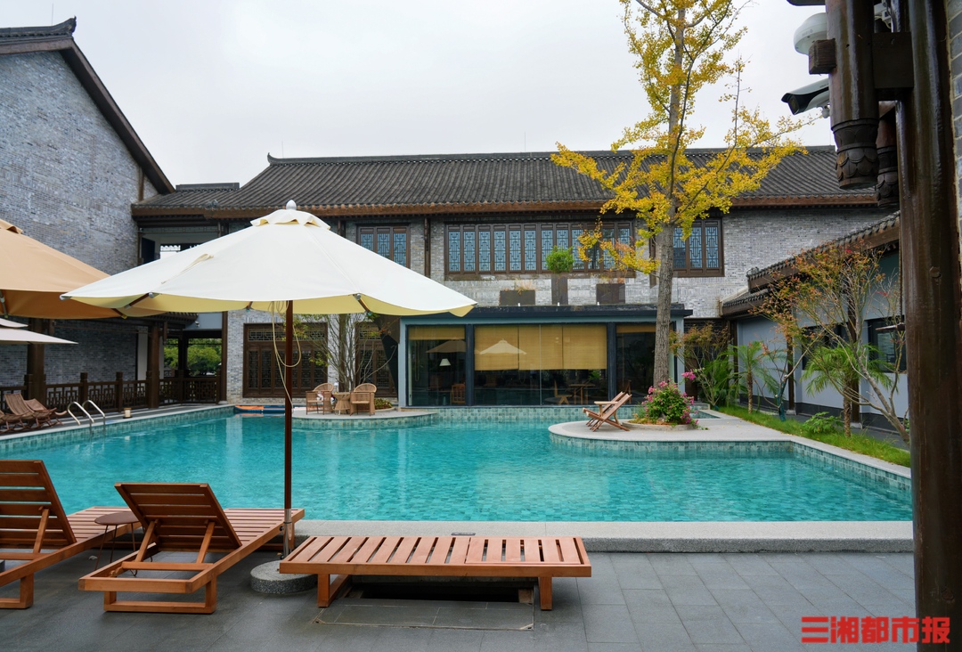 不仅如此,民宿内的3个庭院也各有特色,有露天泳池的休憩区、有苏式园林风格的茶歇区、还有发呆听雨的休闲区。在这里,一切的心灵需求都能得到满足。