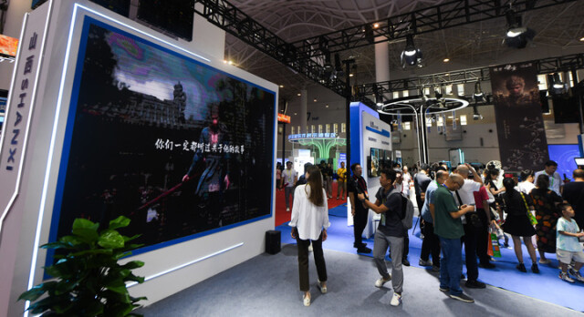 9月21日,观众在第十四届中国国际数字出版博览会上的山西展团展台参观。 新华社记者 杨冠宇 摄