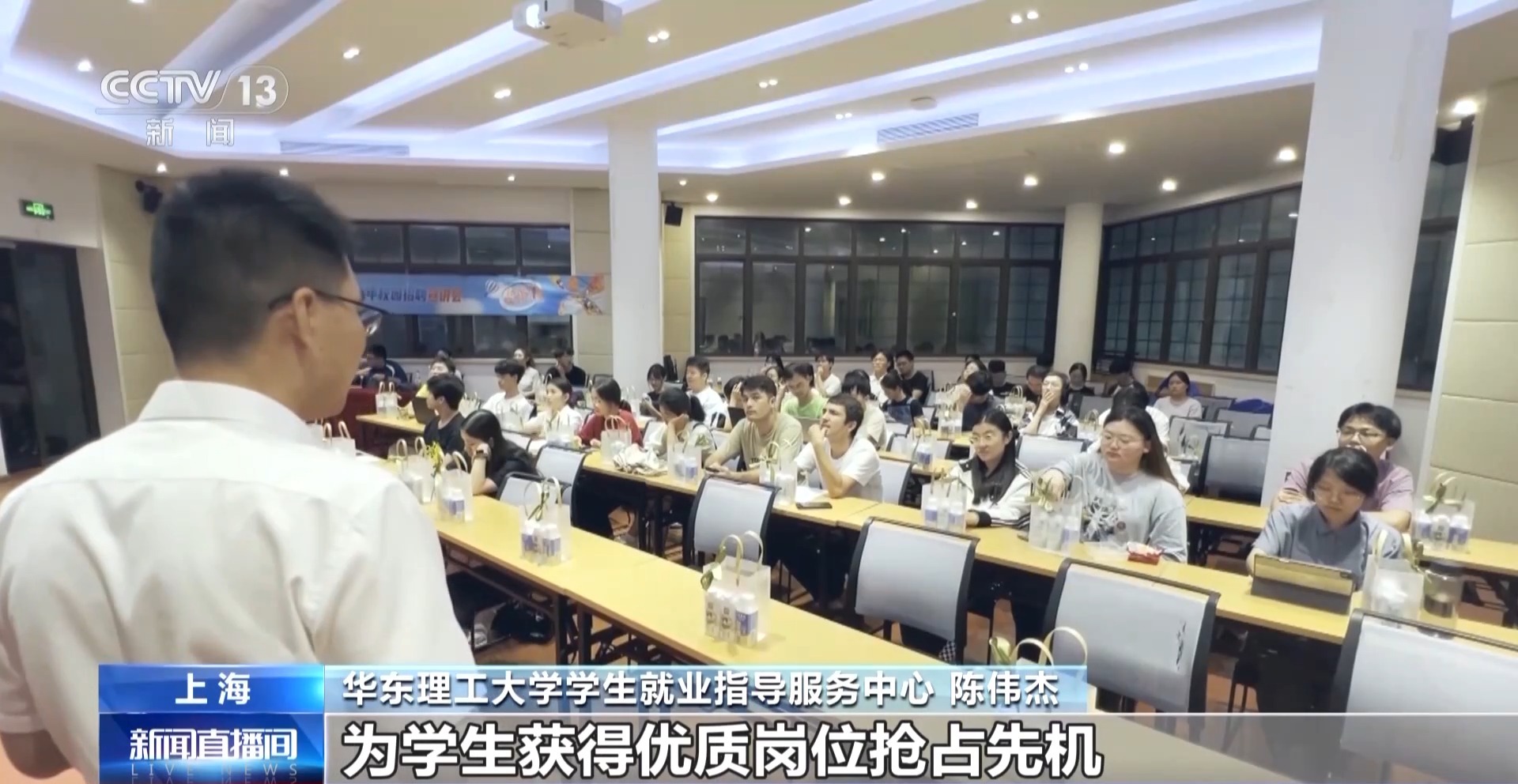 华东理工大学学生就业指导服务中心 陈伟杰:企业在宣讲后需要面试的,我们也会提供面试间,为学生获得优质岗位抢占先机。