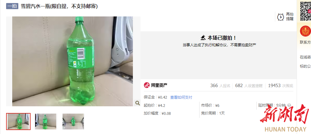 法院4.2元起拍一瓶雪碧新进展:已撤拍