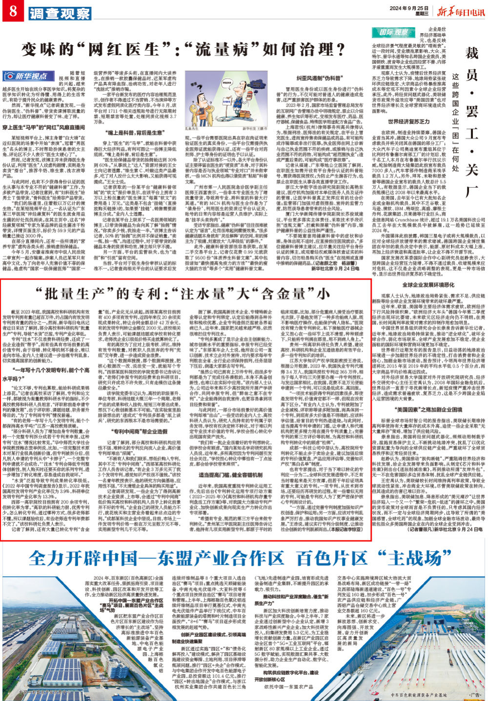 专利“注水”不仅浪费科研经费,还成了一些企业造假“帮手”。而有些具有市场前景的高价值专利,由于容错、转化等机制不健全,难以走向市场。业内人士建议进一步治理专利乱象,切实提高国家的创新能力。