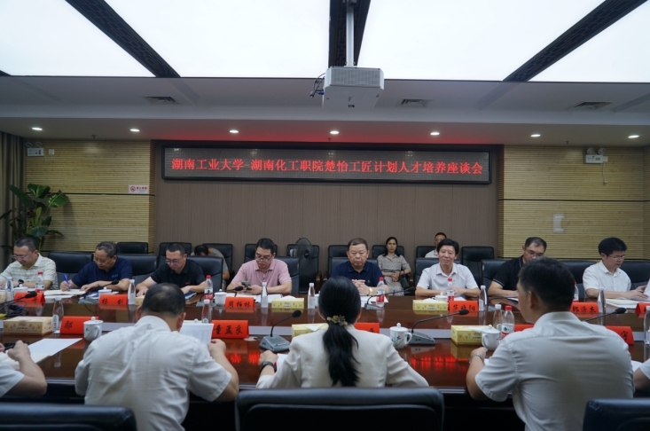 随后举行了“楚怡工匠计划”人才培养座谈会,童孟良主持会议。隆平向刘望一行就“楚怡工匠计划”化学工程与工艺班的录取和报到情况、入学教育、教学安排及生活保障等方面进行了详细的介绍与汇报。目前,“楚怡工匠”本科班学生体现了良好的精神风貌,对校内宿舍、食堂等生活设施满意度高,图书馆、教室、实训条件等完全满足教学需求。同时强调,本届本科班是我校与湖南工业大学合作办学开设的第一个本科专业班级,学校有信心更有决心充分发挥两校优势教育教学资源,严格落实双方共同研制的人才培养方案,创新培养路径,为学生创造更优更好的成长条件。
