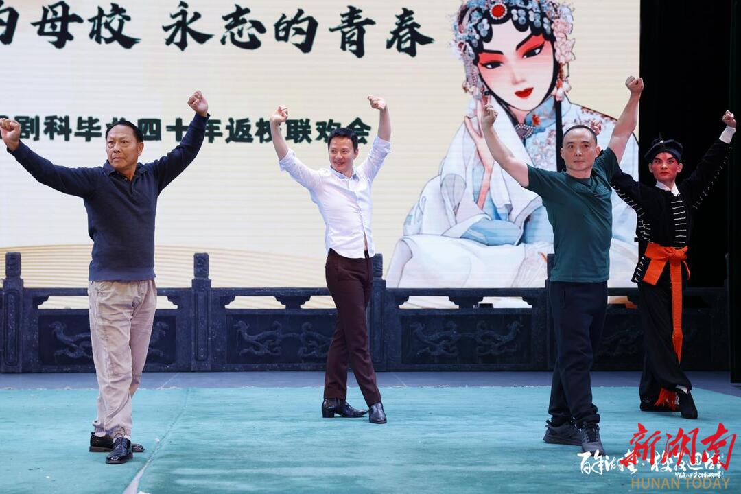 此次一同回到母校的还有湖艺78级湘剧科的数十名校友,他们如今各自在戏曲、影视、音乐、书画等诸多艺术领域成就斐然。校友们一同参观了戏剧学院教学和实训场地,并在星光实验剧场欣赏了在校师生带来的戏曲经典剧目表演,校友代表黄虹、冯伏强、姚嘉、李忠良等先后发言,向母校汇报各自的成绩、向恩师表示诚挚的感谢、向老同学和师弟师妹们致以衷心的祝愿。湖南艺术职业学院党委书记李越胜、校长周邦春、党委副书记杨向东等校领导一同参与相关活动。