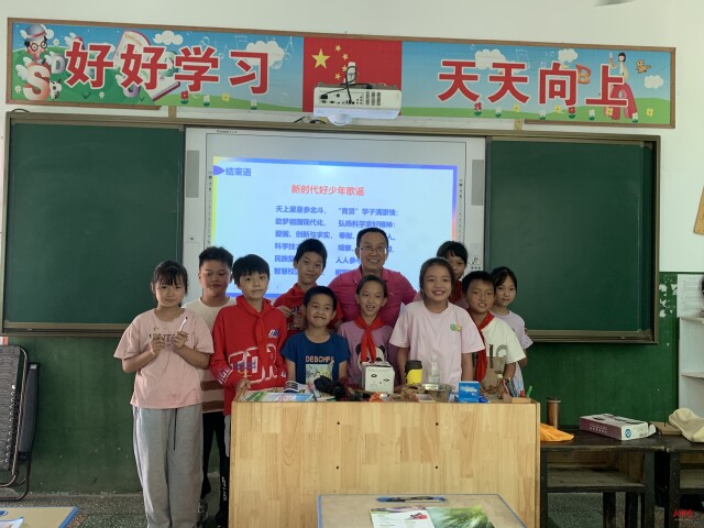 湖南日报9月27日讯(通讯员 罗璇 匡泉泵 全媒体记者 周阳乐)9月25日上午,中国发明协会中小学创造教育分会会长谭迪熬,在长沙市科技新闻学会同仁的陪同下,来到娄底市双峰县锁石镇的乡间育贤学校,给全校一到五年级的45名学生和8位教师,上了一堂妙趣横生的科普课。
