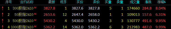 9月27日,在A股强劲表现带动下,股指期货市场继续大幅飙升。