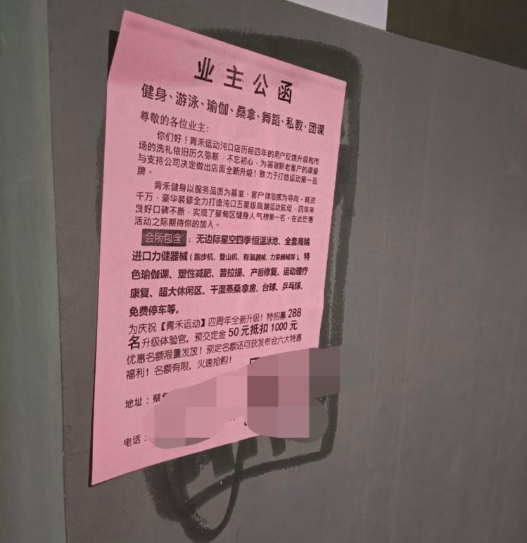 2021年,张雨在武汉市经开区一家健身房办理健身卡。2022年8月,该健身房突然推出促销活动“预存50元抵1000元”,并在周边小区张贴了促销广告。健身房新来的教练主动联系张雨,说活动只剩最后一天,健身年卡价格要比之前少1000元。