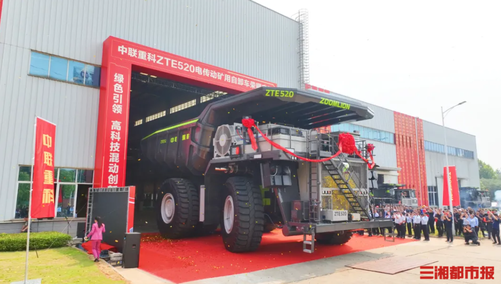三湘都市报·新湖南客户端9月28日讯(全媒体记者 潘显璇) 9月27日,由中联重科自主研制的全球最大混合动力矿卡ZTE520在湖南长沙下线。这是国产矿山装备的又一历史性突破,标志着我国矿山装备进一步挺进全球行业高端领域。