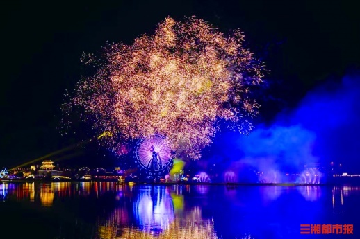 长沙铜官窑国风乐园烟花夜景。 景区供图