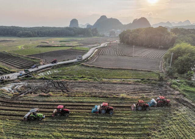 9月26日,道县寿雁镇东升村,农机手驾驶油菜直播一体机开展油菜直播演示。蒋克青 何华元 摄影报道(湖南图片库)