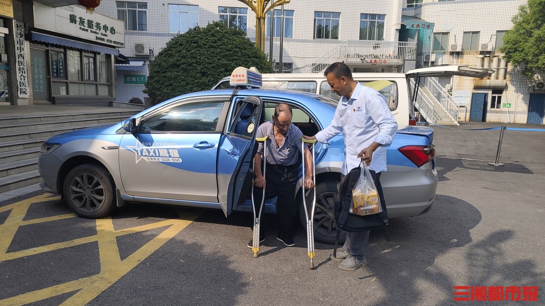 9年前,正在跑车的黄国平在长沙市第四医院门口接到了刚看完病的唐有贵。注意到老人一手拐杖、一手行李,行动不便,黄国平赶紧接过东西,把老人扶上了车。
