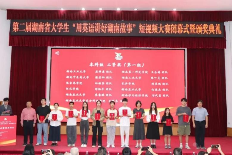 不久前,第二届湖南省大学生“用英语讲好湖南故事”短视频大赛闭幕式暨颁奖典礼在湖南农业大学修业讲堂举行,湖南涉外经济学院外国语与国际教育学院杨颖、徐翠波老师指导的《一片叶子的故事》(团队成员:信息学院詹义胜、人文艺术学院李香、人文艺术学院杨浩冉、 商学院张妍、信息学院徐焌)斩获本科组一等奖;杨帆、廖师师老师指导的《盐碱地里稻花香》(团队成员:外国语与国际教育学院邝代昌、林煦阳、曲悦宁、张亚玲、文籽妍)荣获本科组二等奖。