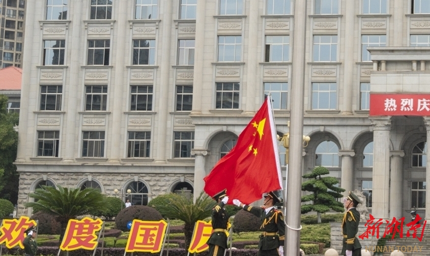 湖南日报·新湖南客户端10月1日讯(湖南日报记者)七十五载奋进路,共庆华诞启新程。10月1日上午,娄底市委、市政府机关举行升国旗仪式,市委书记邹文辉与干部职工代表及自发前来的各界群众共同庆祝中华人民共和国成立75周年。
