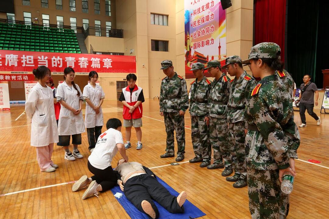 讲座环节,郴州市强制隔离戒毒所一级警员唐日晖结合实际案例,讲述了“毒品是什么”“如何区分药品和毒品”“什么是非法滥用”等内容。公共卫生学院教师江艳通过讲解、演示、互动问答等方式,向新生们宣传普及艾滋病防治知识。护理学院教师周繁华向新生们普及了气道异物梗阻自救方法。医学部教师张芡强调了心肺复苏方法的实用性和重要性,并进行了现场演示。