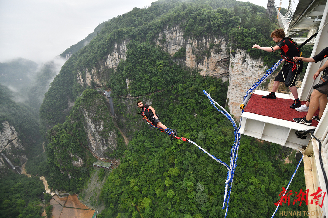 大峡谷玻璃桥游客在体验蹦极运动。景区供图