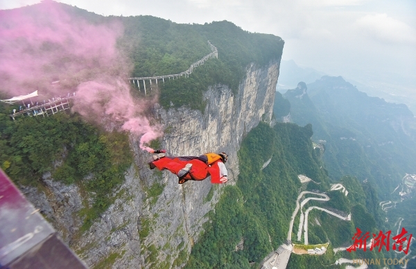 9月中旬,第十届翼装飞行世锦赛在张家界天门山景区举行,11个国家的16名翼装飞行运动员决战巅峰,引来众多海内外媒体关注。天门山的绝美景色,也随着画面传播到全世界。