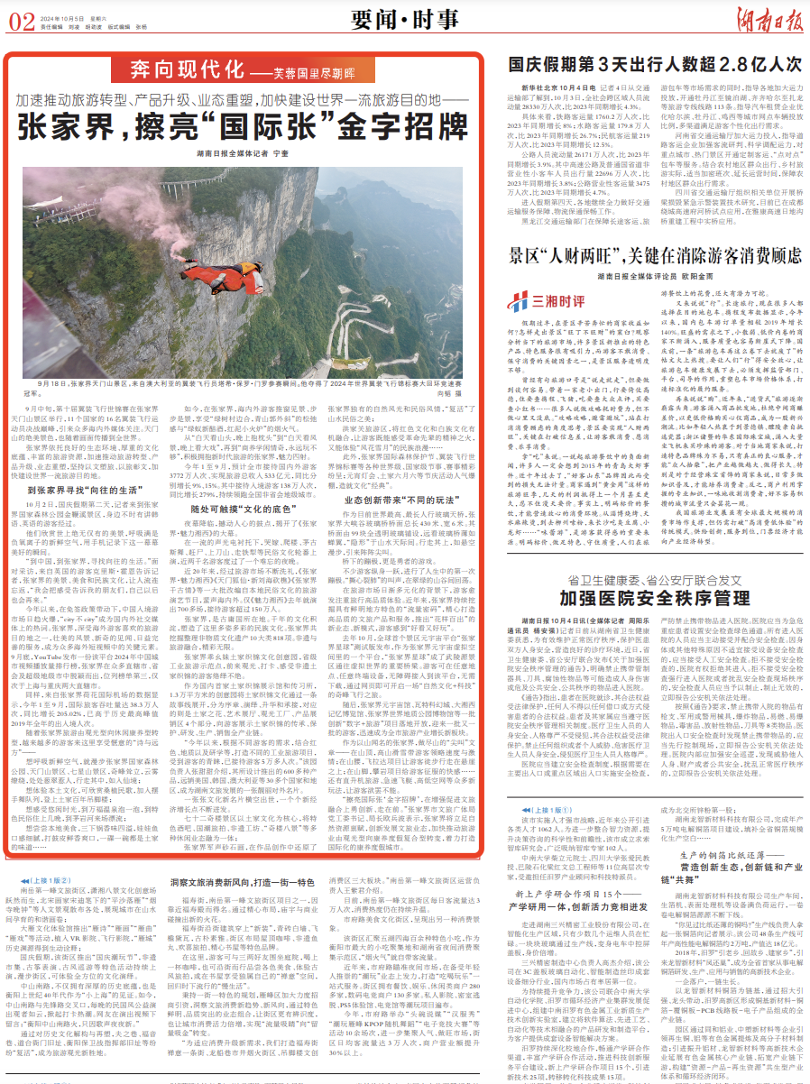 在旅游市场日渐多元化的背景下,游客愈发注重旅行高品质体验。近年来,张家界持续挖掘具有鲜明地方特色的“流量密码”,精心打造高品质的文旅产品和服务,推出“花样百出”的新业态、新模式,游客感到“好看又好玩”。