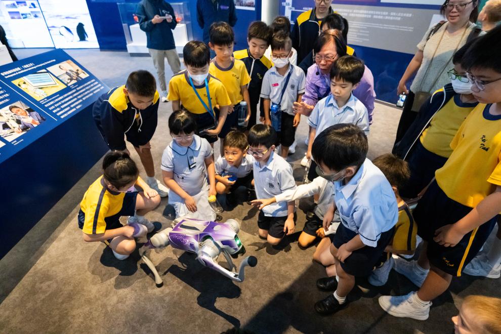 10月4日,圣公会基德小学学生在香港特区国家安全展览厅参观。 新华社记者 朱炜 摄