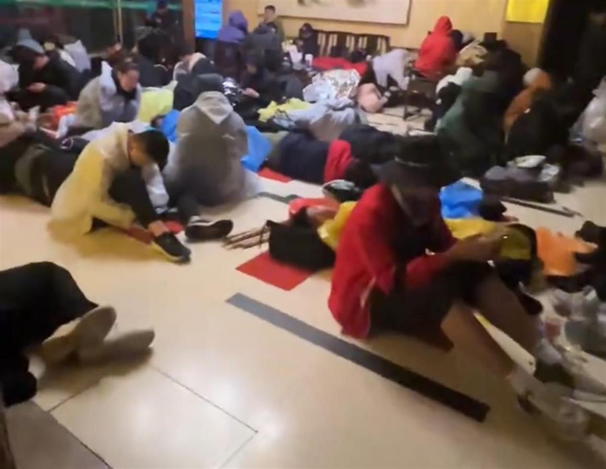 罗先生介绍,1日晚10时许,山上风很大,他们也不敢再继续往前,便在玉屏楼宾馆附近找到了一个还开门的公厕。进去才发现,公厕里或躺或坐已经挤满了休息的游客,男女都有,让人无处落脚,甚至还有游客没有位置只能站在厕所避寒。他找了半天,最终在楼梯上找了一个角落坐下休息。