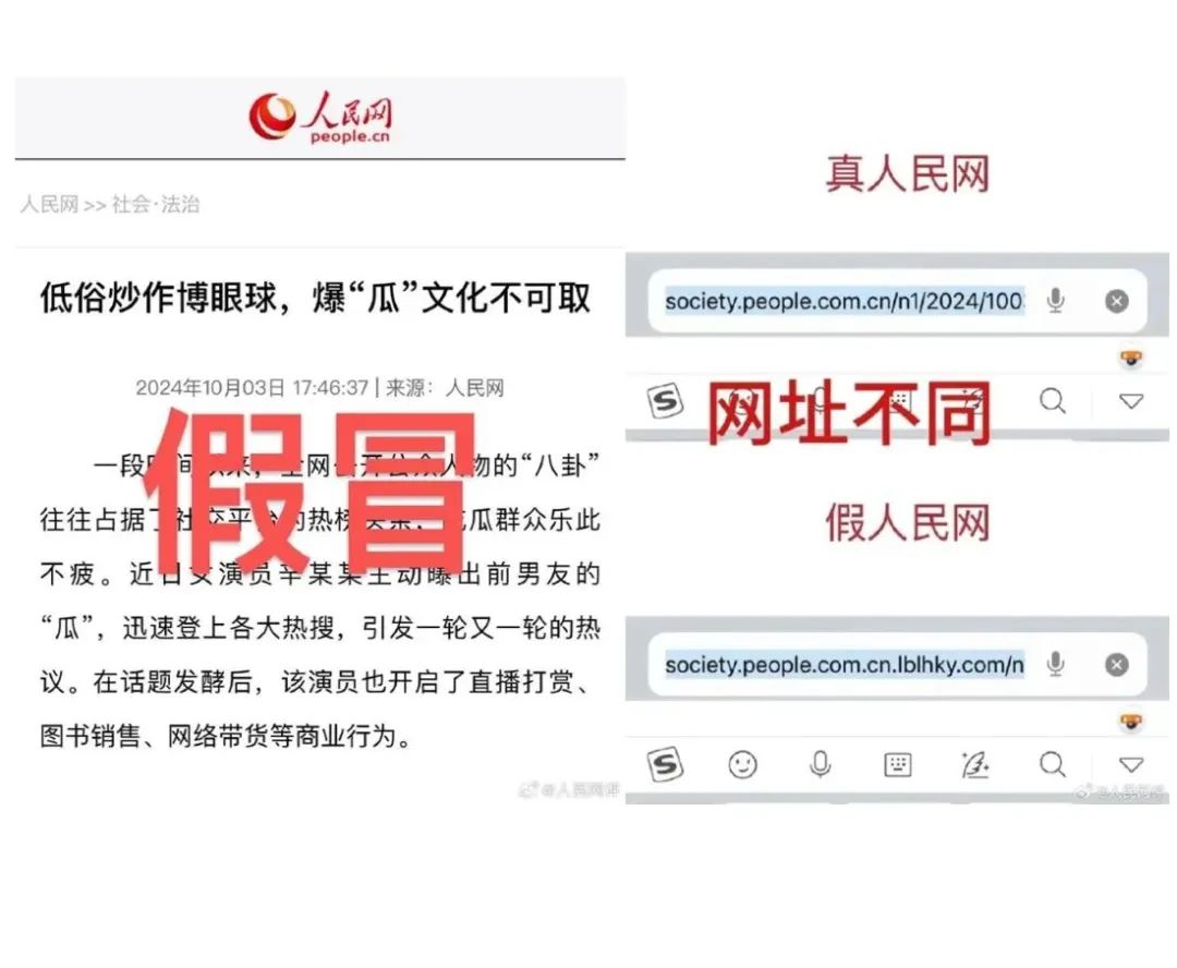 近日,演员辛雨锡爆料称“德云社秦霄贤多次劈腿”,引发网友关注。10月3日,一篇题为《低俗炒作博眼球,爆“瓜”文化不可取》的文章打着“人民网”旗号在网上被恶炒。有网友误将其解读为“人民网指责辛雨锡爆料低俗”“暗挺秦霄贤”。