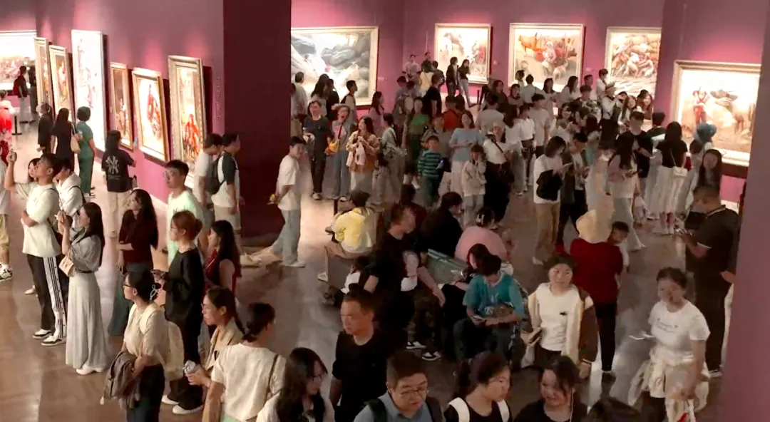 不远处的李自健美术馆2日2万多人参观,3日3.5万余人入馆参观。