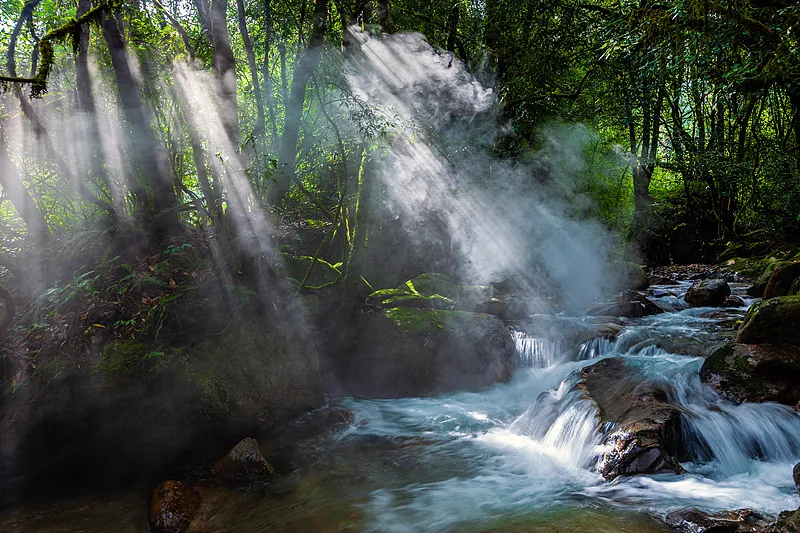 “绝壁千里险,连山四望高”,形象地描述了哀牢山的景象。密林重重、沟壑纵横、信号空白,当地百姓称其为“死亡森林”,也有网友称其为现实版“云南虫谷”。哀牢山为何如此神秘?其实它不是一座山,而是一片横亘在云贵高原与横断山脉分界线上绵延数百公里的群山。哀牢山的彝语意思是“虎豹出没的地方”。这里保存了世界同纬度面积最大、人为干扰最少、最完整的亚热带中山湿性常绿阔叶林森林生态系统。